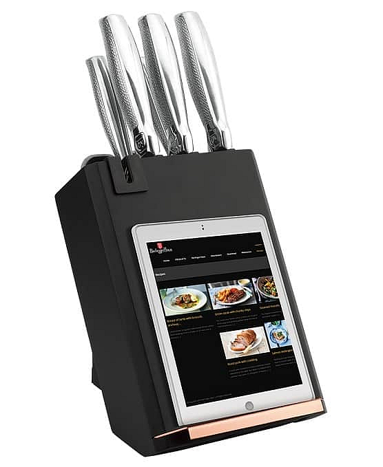 2.jakost - BERLINGERHAUS Sada nožů ve stojanu s držákem na tablet a brouskem 7 ks Black Rose Kikoza Collection BH-2339