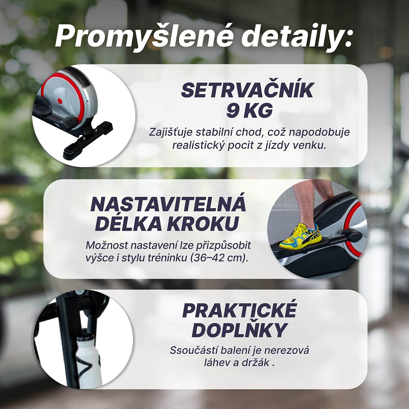 - nastavitelná délka kroku 36 - 42cm, rozpětí mezi lyžinami je 17,5 cm