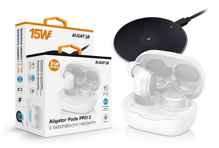 Aligator Pods PRO 2 s bezdrátovým nabíjením + Bezdrátová nabíječka Aligator Wireless-Pad 15W. Bezdrátová sluchátka s funkcí True Wireless ALIGATOR PODS PRO 2 nyní v akčním setu s nabíječkou podporující rychlé bezdrátové nabíjení o výkonu 15W, která nabije Vaše sluchátka, nebo Váš mobilní telefon.