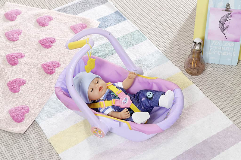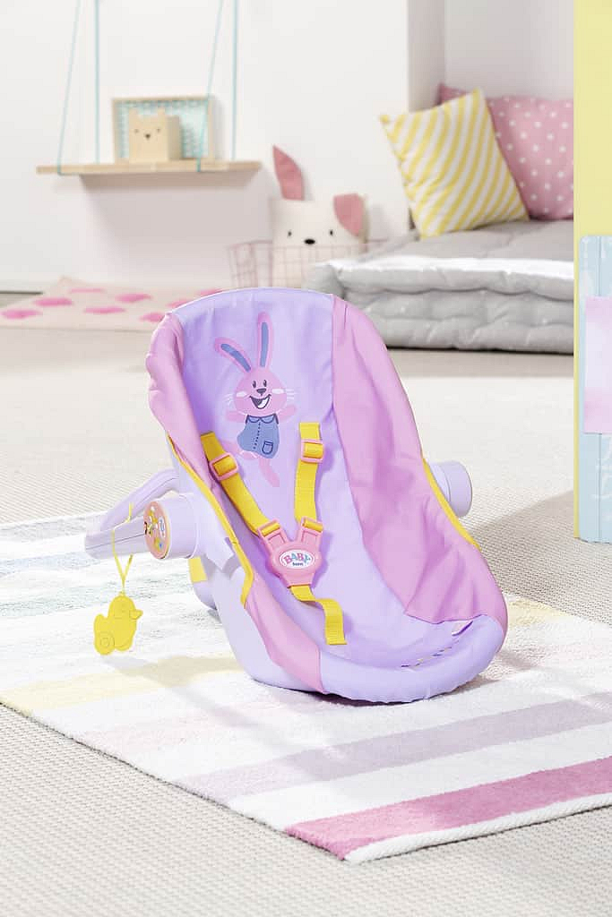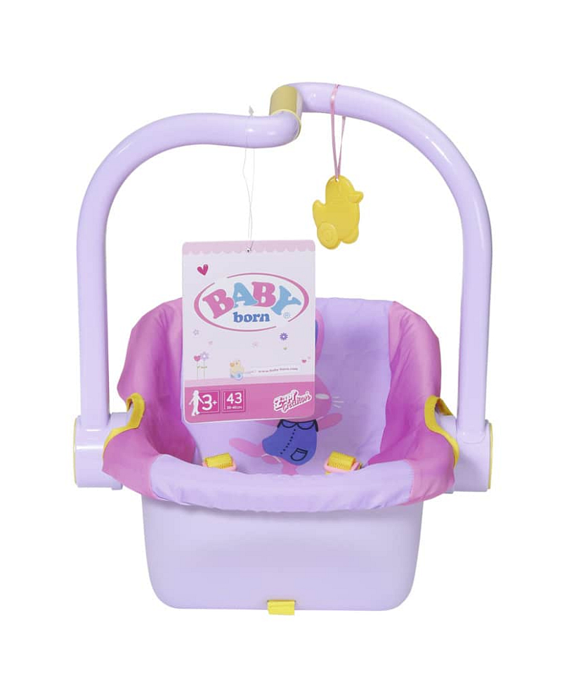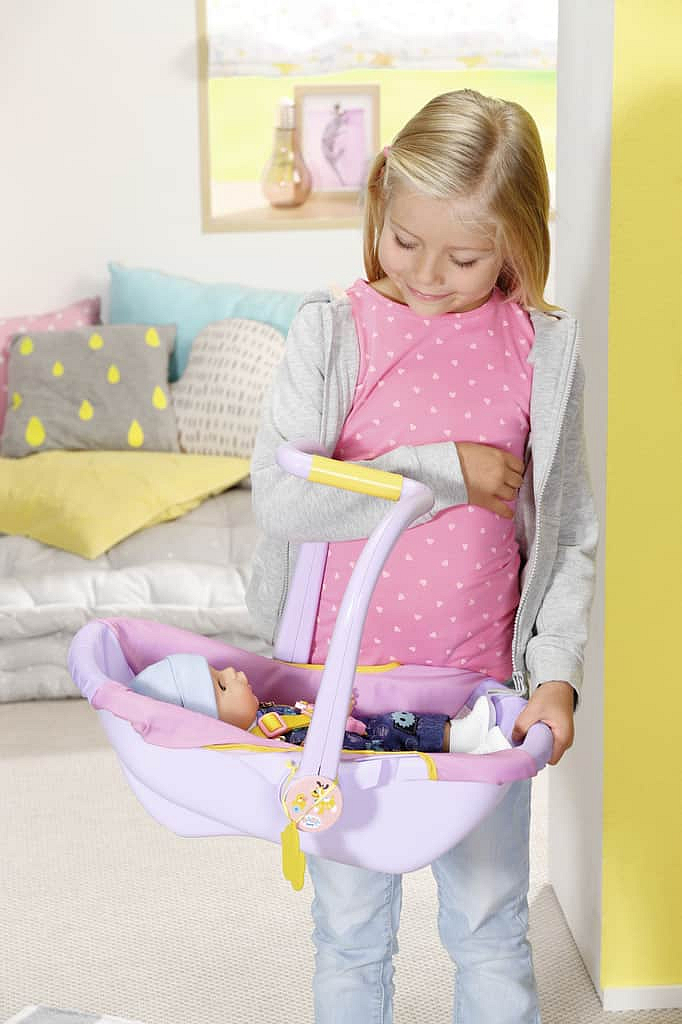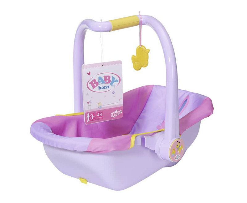 Malá objevitelka BABY born usnula během procházky v parku mamince v náručí. Kolem je tolik nových věcí! Naštěstí má malá maminka s sebou přenosnou sedačku. Je úžasně pohodlná, takže se v ní BABY born krásně spí. Zároveň je i praktická, protože díky rukojeti ve tvaru písmene Z se snadno uchopí a přenáší. Když se BABY born probudí, je většinou ještě trochu ospalá a ráda si hraje s visící kačenkou Bertou. Později se může rukojeť otočit na druhou stranu a z přenosné sedačky se v mžiku stane pohodlné křesílko, ze kterého BABY born ráda pozoruje okolí. A když už je čas se vrátit do auta a jet domů, sedačku po stranách připoutejte bezpečnostním pásem a můžete vyrazit, i BABY born má svou bezpečnou autosedačku. • Originální doplněk pro panenky BABY born. • Pro nápaditou, rozmanitou a dlouhotrvající hru. • Vhodná i pro menší panenky BABY born Přenosná sedačka.