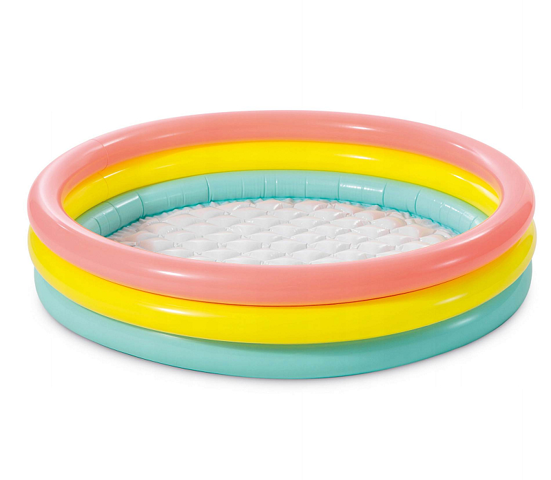 Nafukovací bazén INTEX Soft Dno 114x25 cm Si vaše děti jednoduše zamilují. Netlačte se v létě na koupališti a připravte vašemu dítěti bazének v pohodlí zahrady. Výhodou nafukovacích bazénů je to, že k jeho sestavení nepotřebujete žádné nářadí. Stačí bazének pouze nafouknout, napustit vodou a můžete si s vašimi ratolestmi užívat vodních radovánek doslova během pár minut.Uschování je také snadné. Stačí jen vylít vodu, vypustit vzduch a bazének nechat vyschnout na slunci. Správným uskladněním bazénu přes zimu docílíte toho, že vám bazén poslouží napříč několika sezónami. Nafukovací bazének je vhodný pro nejmenší děti. Své děti ovšem nikdy nespouštějte při hraní v bazénku očí. PVC použité při výrobě neobsahuje ftaláty.Barevný motiv dodáván dle aktuálních skladových zásob. Technický popis:- výrobce INTEX- barva zeleno/žluto/růžový- rozměry bazénu 114x25 cm- objem bazénu při naplnění do výšky 24 cm - 299 l- síla stěn bazénu 0,20 mm- síla podlahy 0,18 mm- hmotnost bazénu bez vody 1,7 kg- tří-komorová konstrukce- měkká nafukovací podlaha- záplaty na opravu bazénu součásti balení - max výška vody 19 cm (136 L)