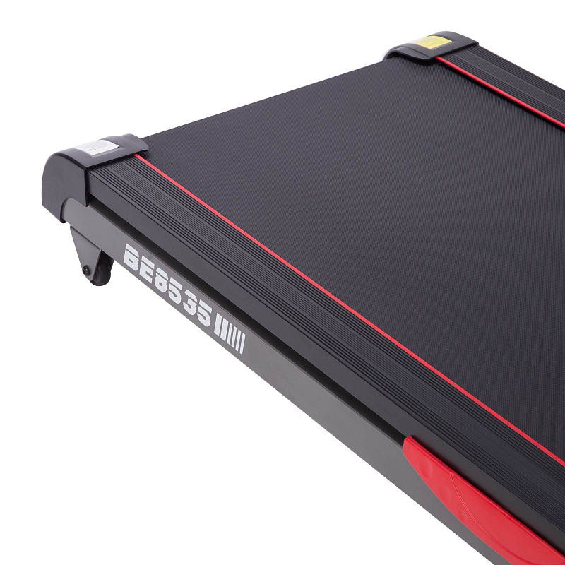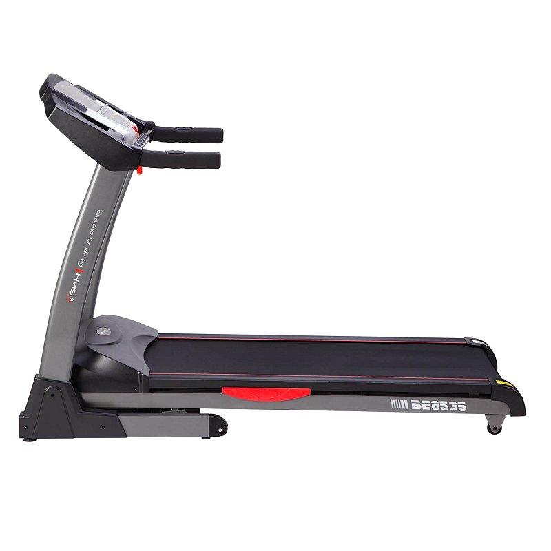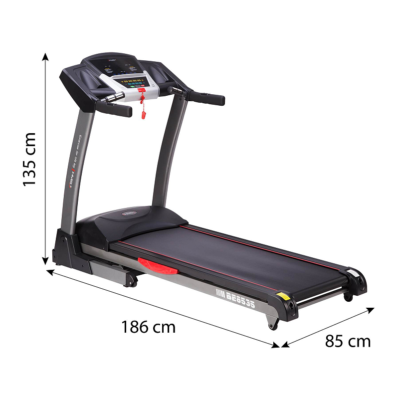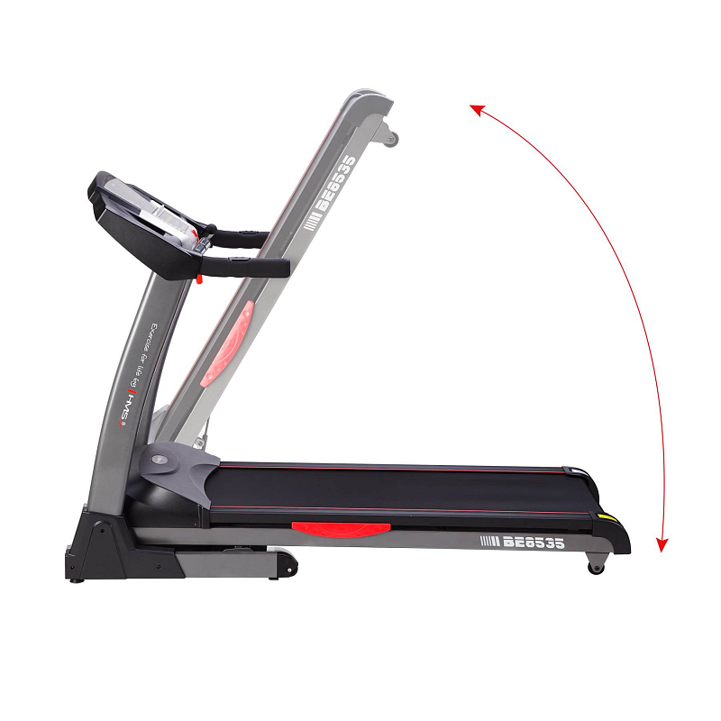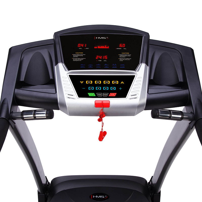 Běžecký pás BE8535 HMS je moderní, robustní běžecký trenažér s možností snadného složení a snímači tepové frekvence v rukojetích. Tichý motor s výkonem 3,5 HP zaručí maximální rychlost 22 km/h. Odpružená běžecká plocha s možností elektronického zdvihu pásu, nabízí dostatek komfortu pro každodenní trénink. Veškeré potřebné informace vám přehledně zobrazí podsvícený LED displej, pod který si díky praktické opěrce můžete umístit například tablet. Výhodou jsou zabudovaná kolečka pro snadný přesun pásu na požadované místo. Díky těmto vlastnostem je běžecký pás BE8535 HMS vhodným doplněním každé domácí posilovny.