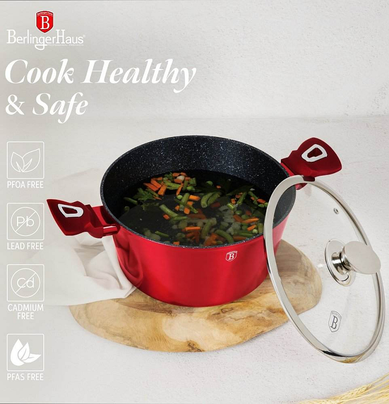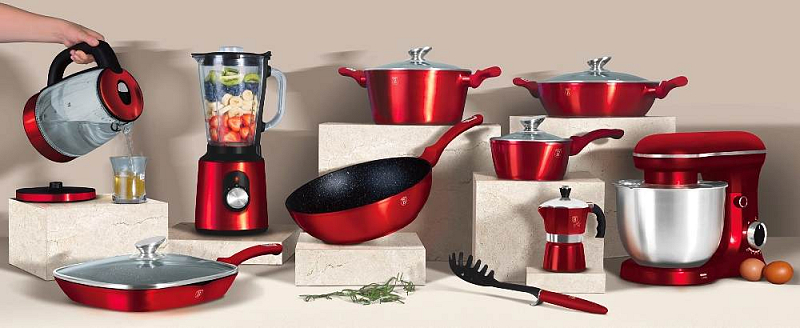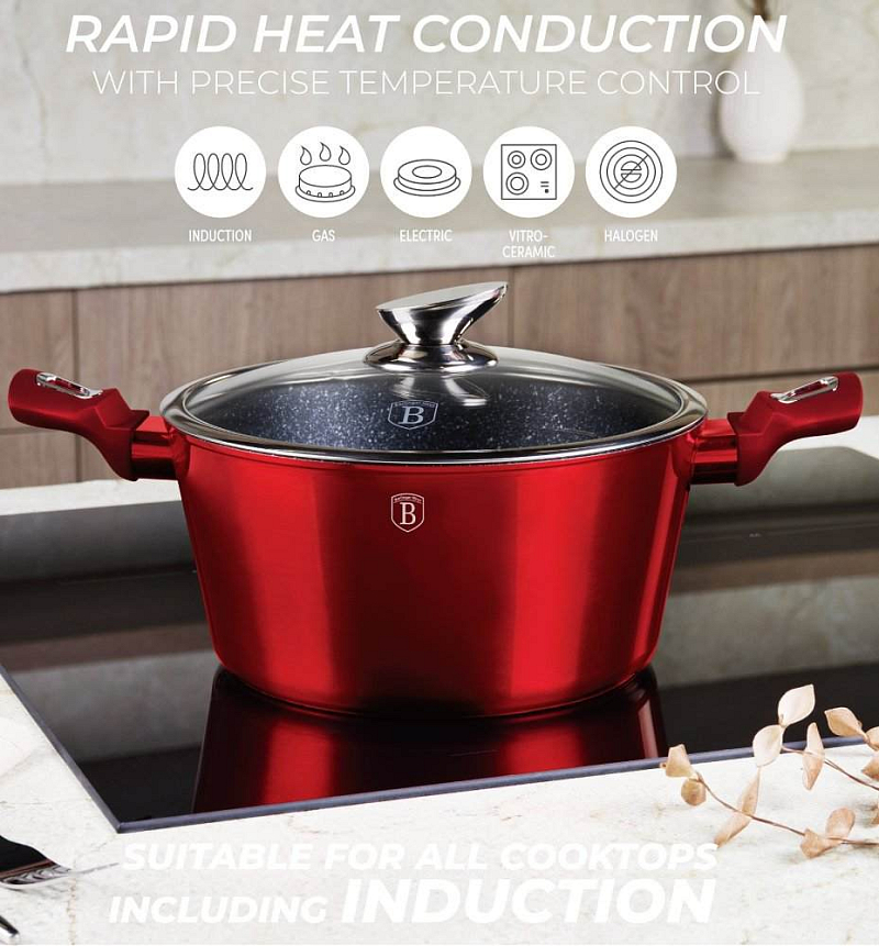 Hledáte vhodnou sadu nádobí do vaší kuchyně? Sadou získáte všechny potřebné nádoby na vaření, ať už budete vařit pro sebe nebo pro více osob. Velkou výhodou je, že můžete objednat najednou více nádobí od ověřeného výrobce BERLINGERHAUS. Sadu nádobí sjednocuje jednotný design, navíc červená barva celé sady je univerzální a vyjímat se bude v každé kuchyni.