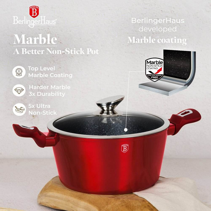 Popis produktu BERLINGERHAUS Sada nádobí s mramorovým povrchem 15 ks Burgundy Metallic Line BH-1226