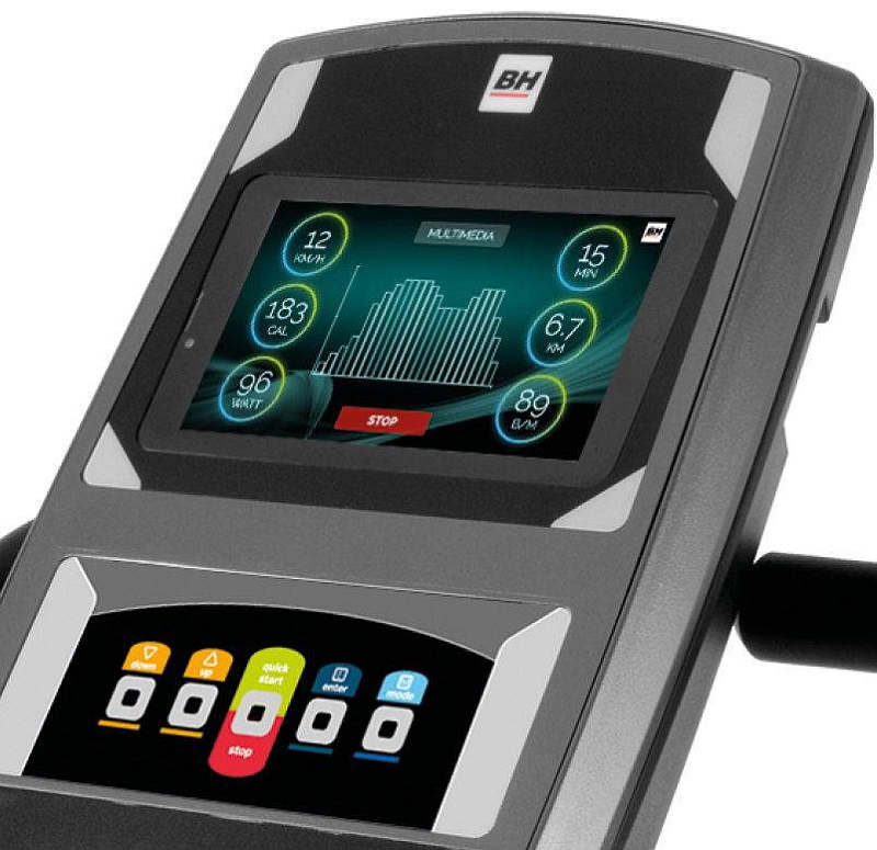 Trenažér vyniká setrvačníkem v přední části stroje, robustní konstrukcí a moderní technologií Touch&Fun, díky které se můžete připojit k internetu a během cvičení sledovat motivační tréninková videa.