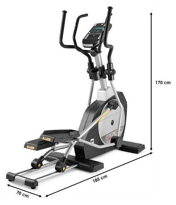Eliptický trenažér magnetický, s programy středové uložení i kloubní spoje s ložisky délka kroku 48 cm, rozteč pedálů 10 cm systém setrvačníku 35 kg, 7" TFT displej dotykový displej, YouTube, internet ... nosnost 130 kg, záruka 3+5 let, servis doma
