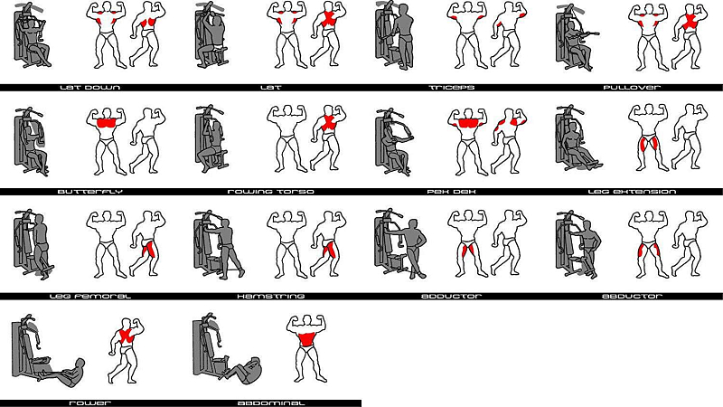 - běžné cviky pro cvičení horních a spodních svalových partií