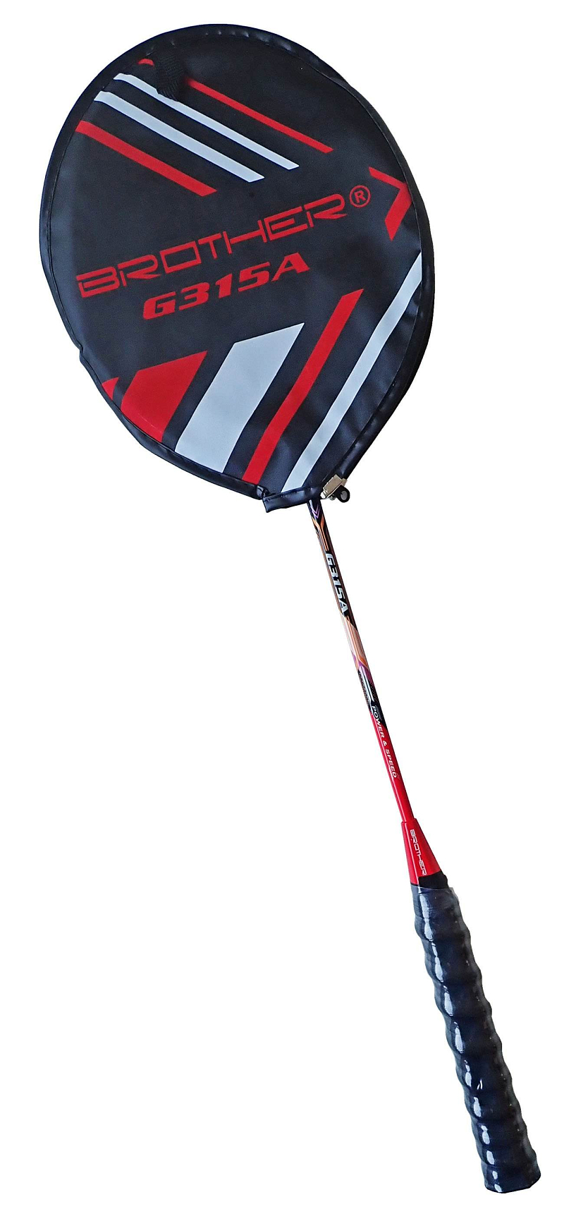 Popis produktu Badmintonová raketa Brother G315A s hliníkovým rámem a pouzdrem červenočerná