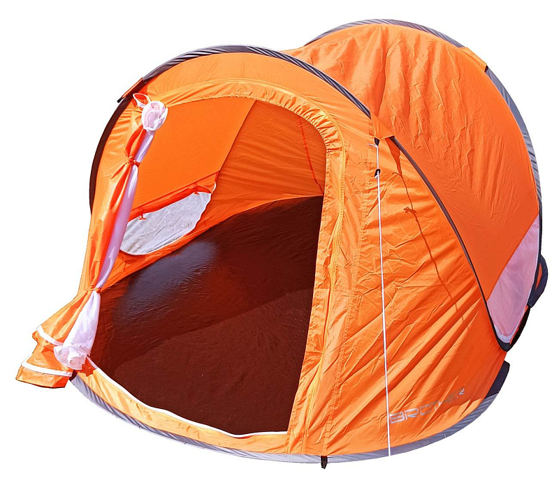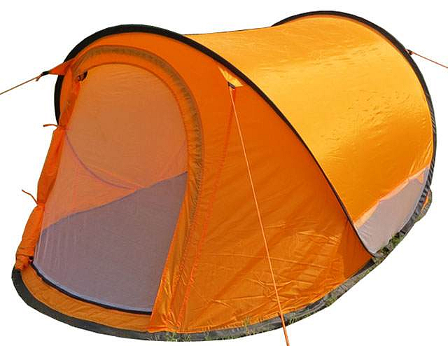 STAN SAMOSTAVĚCÍ pro 3 osoby. Jedná se o velmi skladný a jednoduše postavitelný stan. Navléknuté sklolaminátové pruty po vyndání z obalu stan kompletně postaví. Pak už jen stačí stan upevnit kolíky k zemi a dopnout plášť stanu kotvícími šňůrami kolem dokola.