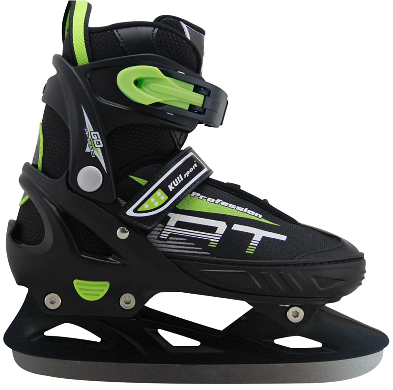 Hokejové brusle, roztahovací - 4 velikosti v jedné botě díky jednoduchému mechanismu na zvětšování a zmenšování skeletu bot. Rozsah nastavení boty na čtyři velikosti 32 - 35 = 20,3 - 22,3 cm. Délka vnitřní stélky, při nejmenší nastavené velikosti, činí 20,3 cm. Brusle jsou tvořeny plastovým skeletem a vnitřní textilní botičkou, která má měkkou výstelku pro zabezpečení nejvyššího komfortu. Pro dosažení řádného upevnění na nohu je k dispozici klasické šněrování, textilní přezka na suchý zip a plastová přezka slouží k dokonalemu upnutí boty na nohu. Brusle mají vodoodpudivou povrchovou úpravu (impregnaci), která zabraňuje pronikání vlhkosti do boty a zároveň tak brání prochladnutí nohy. Přesto doporučujeme občas brusle naimpregnovat běžně dostupnými impregnačními prostředky. Brusle mají hokejový nůž.