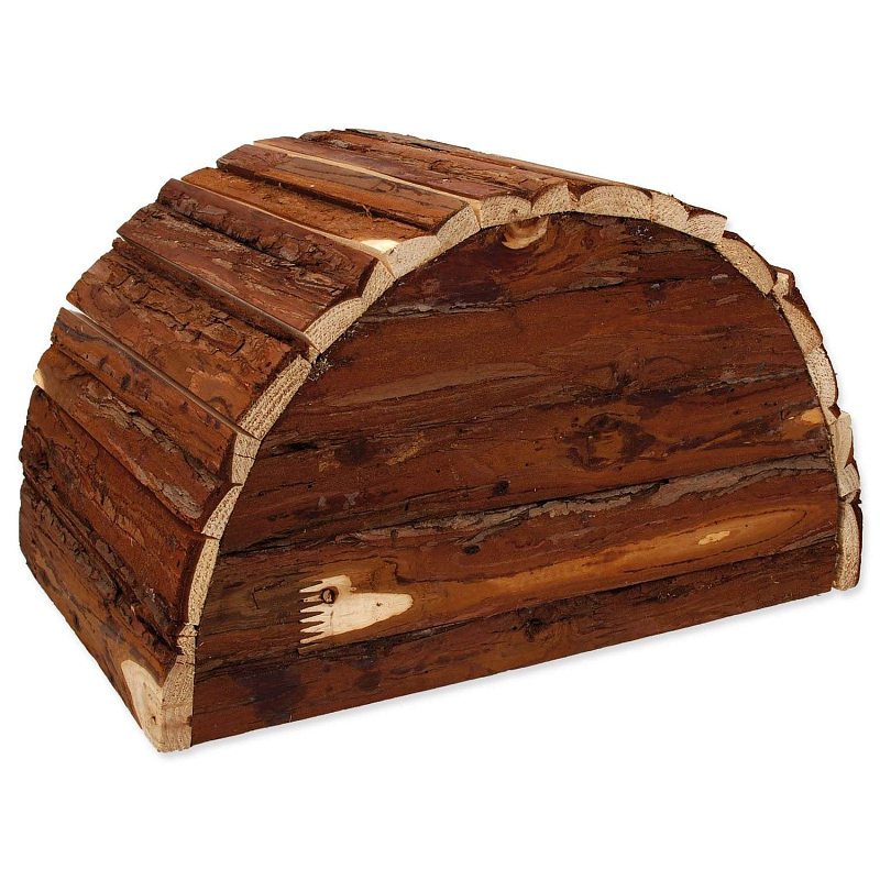 Dřevěný půlkruhový domek pro hlodavce. Velikost: 36,5 x 22 x 20 cm.