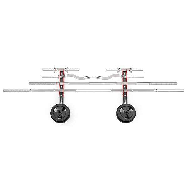 Konstrukčně jde o 2 kusy ocelových profilů určených k montáži na zeď, kdy se každý profil připevní pomocí 4 kotev. Kotvící materiál není součástí dodávky a je nutné zvolit vhodný druh podle materiálu zdi. Po montáži získáme 4 páry držáků na osy a 2 trny pro odkládání závaží. Do držáku tedy můžeme odložit až 4 obouruční osy a nebo až 8 jednoručních hřídelí. Trny pro odkládání závaží mají délku 21 centimetrů a průměr 2,5 centimetru.