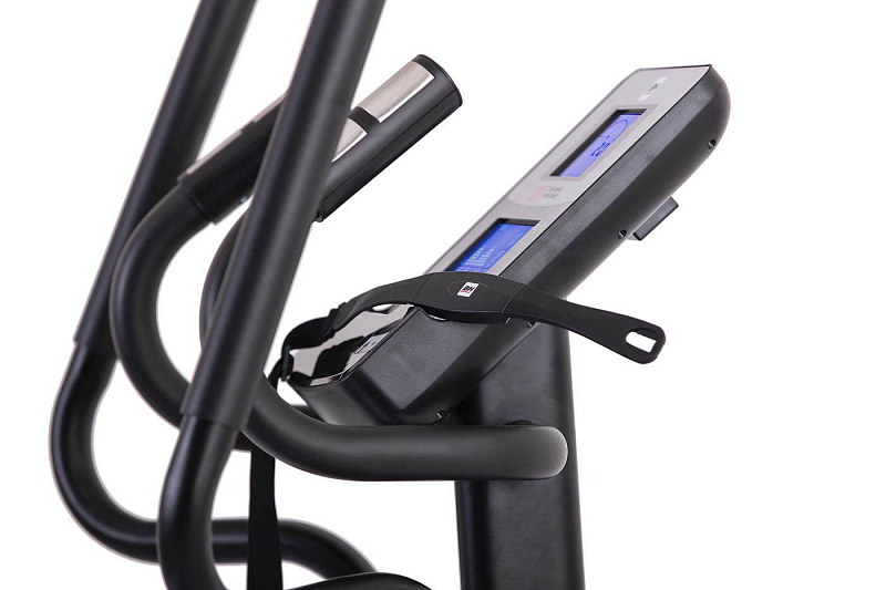 Trenažér vzduchovo-magnetický, s programy středová uložení i kloubní spoje s ložisky délka kroku 53 cm, rozteč pedálů 15 cm 2x LCD displej, komunikace s aplikacemi nosnost 150 kg, záruka 3+5 let, servis doma