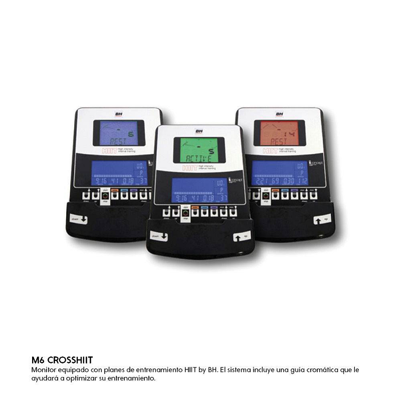 BH Fitness CROSS 1200 HIIT má 2 přehledné LCD displeje se skvělou ovladatelností. Mimo zobrazení základních údajů jako je např. čas, rychlost, spálené kalorie apod., nabízí přednastavené programy, HRC programy, uživatelské programy.