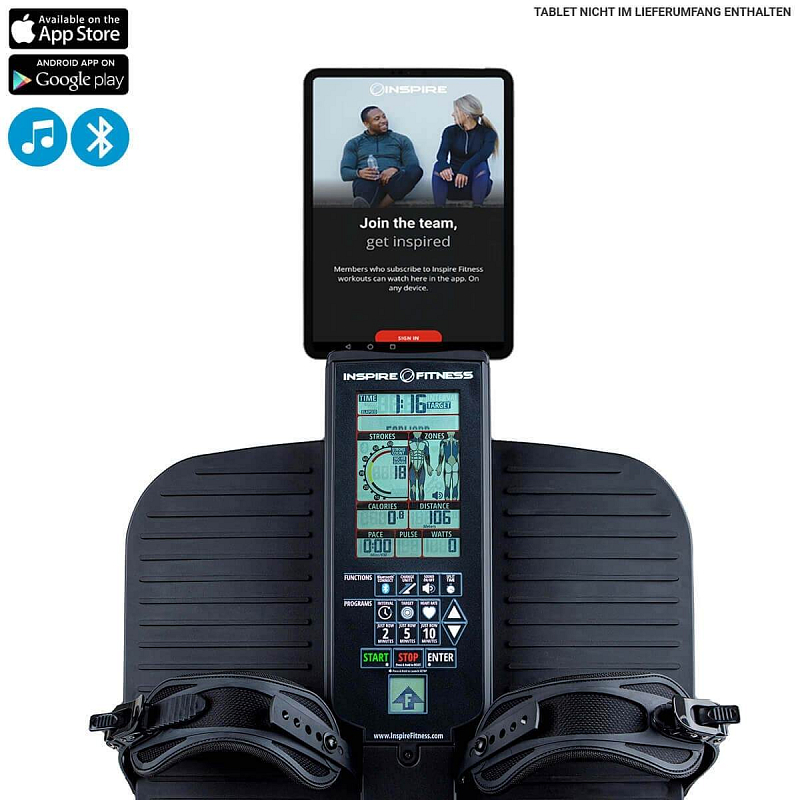 Přehledný počítač s LCD displejem zobrazuje důležité hodnoty, které k tréninku potřebujete. Zábavu a radost při tréninku vám zajistí aplikace Inspire, ke které se připojíte přes váš tablet či smartphone prostřednictvím Bluetooth zařízení.