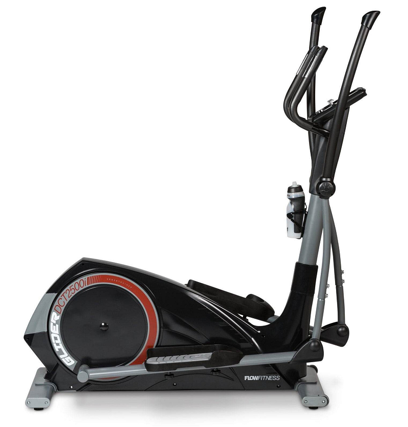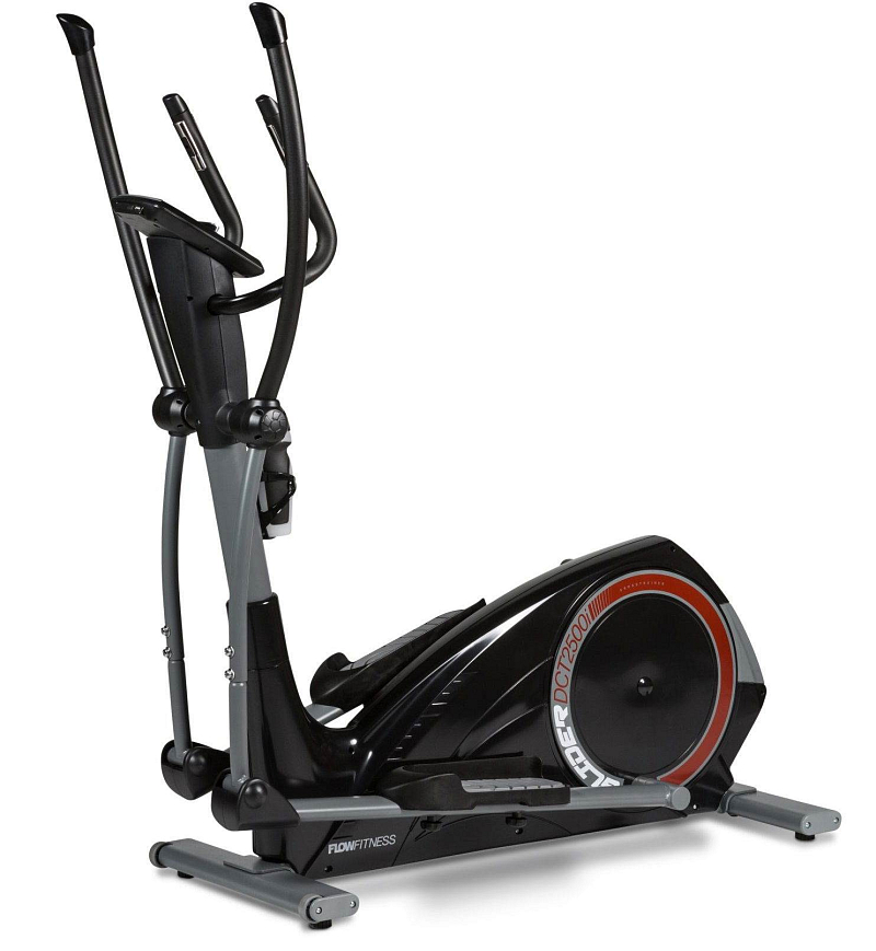 FLOW Fitness DCT2500i je unikátní a vysoce kvalitní crossový trenažér, který je vybaven robustní rámovou konstrukcí, kvalitními komponenty a moderní elektronikou. Vyvážený setrvačník o hmotnosti 18,5 kg zajišťuje tichý a zcela plynulý chod stroje i při maximálním zatížení. Odpor je vytvářen magnetickou brzdou s elektronickou regulací až v 16 úrovních. Délka kroku je univerzální 39 cm a pozice nášlapů je nastavitelná ve 3 polohách, což vám zaručí správný a pohodlný pohyb.