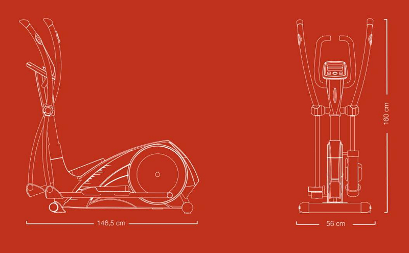 Eliptický trenažér magnetický, s programy středové uložení i kloubní spoje s ložisky délka kroku 42 cm, možnost posunu pedálů systém setrvačníku 18,5 kg, LCD displej bluetooth, komunikace s aplikacemi nosnost 140 kg, záruka 3+10 let, servis doma