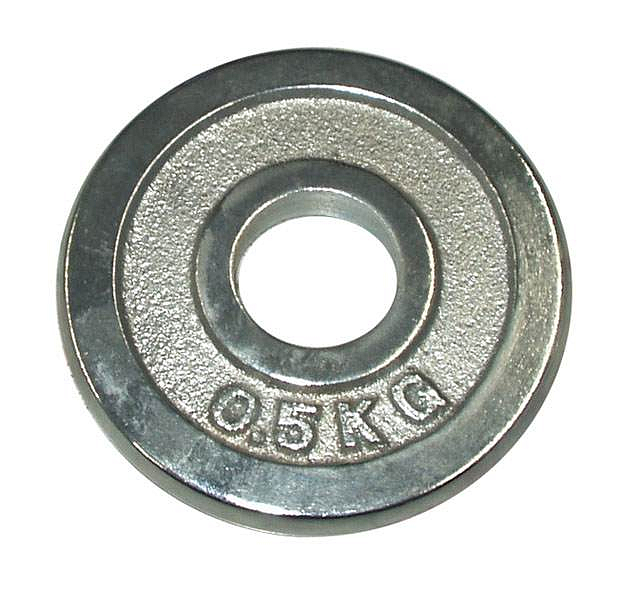 Závaží k činkám chromované, 1 x 0,5 kg, s otvorem na osu o průměru 30mm.