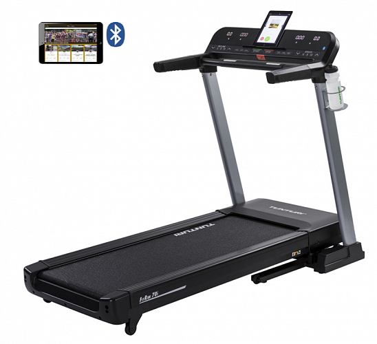 Domácí použití, nosnost 125 kg, max. rychlost 20 km/h, max. sklon 15 %, aplikace TUNTURI Routes, systém odpružení T-Flex, možnost složení + transportní kolečka.