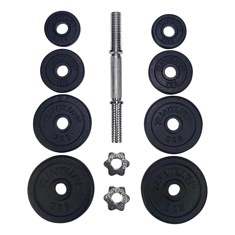 Tato sada činek Tunturi je nepostradatelná, pokud chcete jednoduše trénovat celé tělo. Ideální pro použití doma nebo v posilovně (jedna nebo dvě) pro různé cviky. Činka má ocelovou protiskluzovou rukojeť. Součástí balení jsou 4 různé zátěžové desky. Pohodlné, protože si můžete sami určit požadovanou hmotnost přidáním zátěžových desek na činku. Šroubové uzávěry zajišťují, že závaží zůstanou pevně na svém místě. Velmi příjemné a bezpečné. Vzhledem k široké škále závaží je sada činek vhodná jak pro začínající, tak pro zkušené sportovce.
