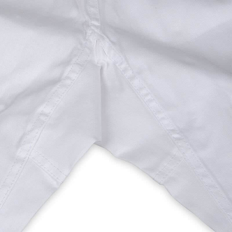 Lehký, a zároveň odolný materiál (směs polyesteru a bavlny, cca 200 g/m2) zajišťuje volnost pohybu a vynikající ventilaci, díky čemuž se vaše dítě může plně soustředit na trénink. Pohodlný střih, systém zesílení v rozkroku i na okrajích a dvojitý systém upevnění kalhot (guma + šňůrka) jsou zárukou, že oděv vydrží každý trénink a bude sloužit dlouhou dobu.