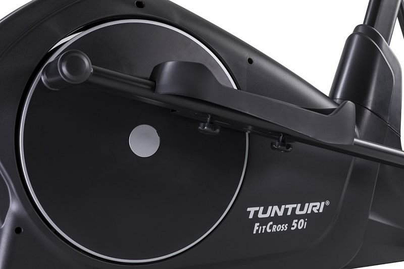 TUNTURI FitCross 50i patří mezi tzv. eliptické trenažéry se setrvačníkem v zadní části stroje. Kombinuje kvalitní mechaniku a ergonomii rámu s nosností do 150 kg. Právě díky důmyslné ergonomii trenažéru a dobré mechanice je zaručen pohodlný a správný pohyb při tréninku. Masivní konstrukce spolu s kvalitními komponenty prodlužuje životnost stroje i při využití těžšími osobami a je bezproblémový i při pravidelném domácím tréninku. Setrvačníková hmota s kalibrovaným setrvačníkem o hmotnosti 14 kg, plochý řemen s dopínací kladkou a moderní magnetická brzda zaručuje u TUNTURI FitCross 50i komfortní, plynulý a zcela tichý chod i při větších zátěžích při tréninku.
