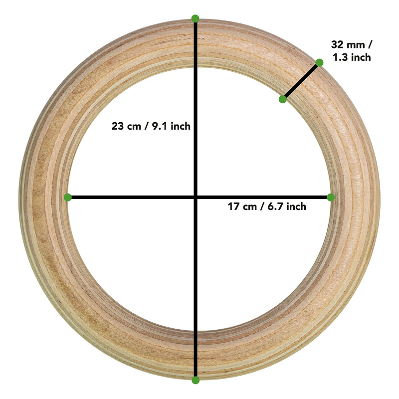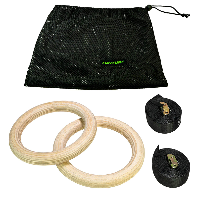 Díky tloušťce 32 milimetrů jsou kruhy vynikající pro profesionální použití, například pro gymnastiku a crossfit. Dřevěné kruhy se snadno přenášejí. Kroužky jsou dodávány s popruhy, takže je můžete snadno připevnit. Značky na popruzích vám umožní snadné zavěšení ve správné výšce.