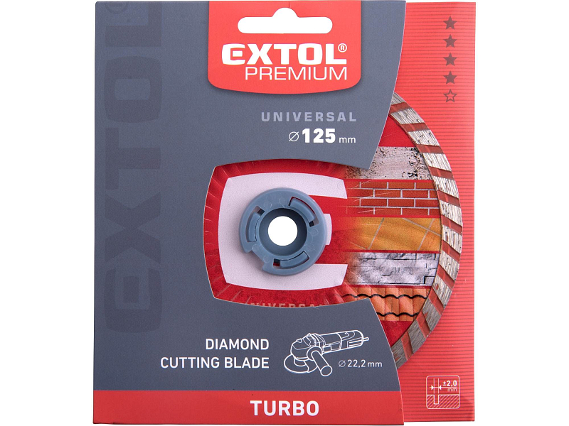 Popis produktu ZRUŠENO! Nahrazeno výrobkem 8803052 kotouč diamantový řezný, turbo - suché i mokré řezání, O 125x22,2x2mm