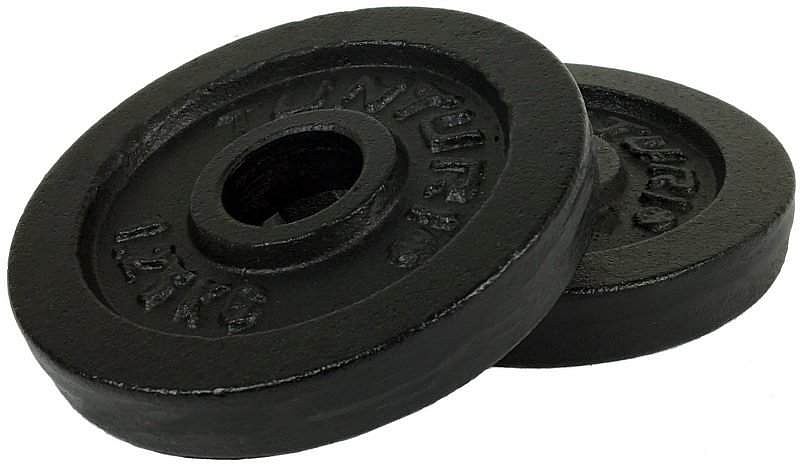 Tunturi železný kotouč 1,25 kg, 30 mm, černý, pár - pro všechny typy posilovacích činek s průměrem osy 30 mm.