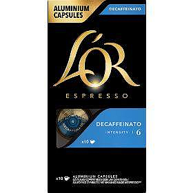 Kapsle Nespresso L´OR Espresso Decaffeinato 10 ks Sladká, ovocná a výrazná chuť Intenzita 6 Bohatá a sladká vůně je jen předehrou pro toto elegantní espresso L´OR Decaffeinato s kakaovými tóny a náznakem lesních plodů Připravujte podle návodu Vašeho Nespresso přístroje Baleno v ochranné atmosféře
