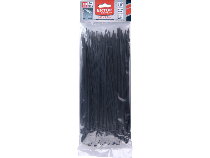 Ohodnoťte produkt pásky stahovací na kabely EXTRA, černé, 205x3,6mm, 100ks, nylon PA66