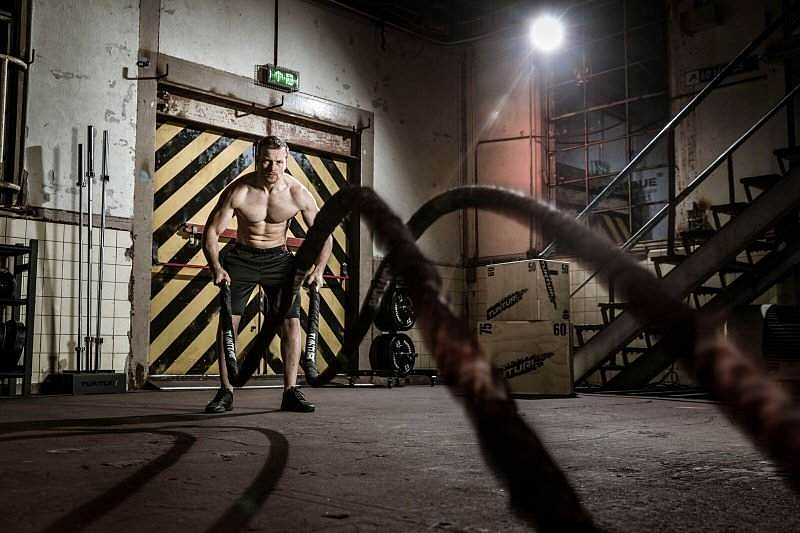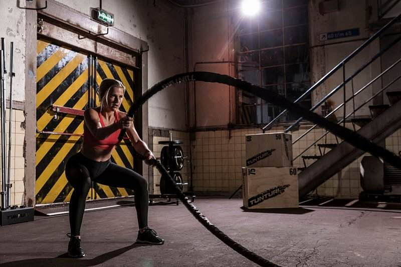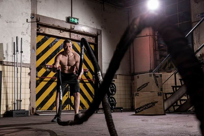 Posilování s vlastní vahou Posilovací lano Battle Rope TUNTURI Pro v obalu 15 m