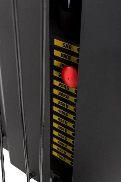 Posilovací věž DELUXE vybavená zásobníkem s volitelným závažím v celkové hmotnosti 70 kg.