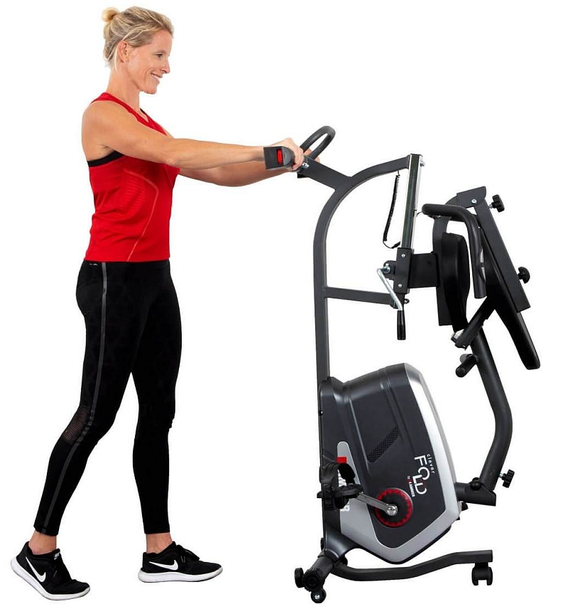 Skládací rotoped určený pro rehabilitaci a osoby se sníženou hybností. Ergonomicky tvarované sedlo. Nosnost 110 kg, hmotnost stroje 27 kg, 16 úrovní odporu, LCD displej, setrvačník o váze 8 kg.