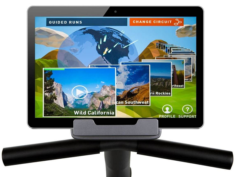 Součástí trenažéru je praktický držák na tablet, na kterém můžete při tréninku sledovat své oblíbené seriály. Tablet není součástí dodávky stroje.