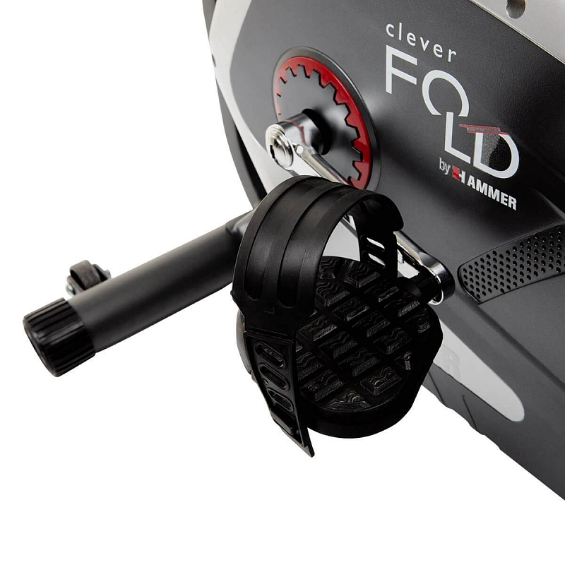 Hammer Clever Fold RC5 je horizontální skládací rotoped neboli recumbent určený především pro rehabilitaci a osoby se sníženou hybností. Díky ergonomicky tvarovanému sedadlu a výškově nastavitelnému opěradlu je trenažér šetrný k vašim zádům. Sedadlo lze pomocí páky snadno a rychle polohovat (vhodné pro menší i větší osoby). Při konstrukci stroje bylo dbáno na kvalitní mechaniku a optimální ergonomii pohybu, a to pro drobnější postavy od 155 cm i vyšší osoby až do 190 cm