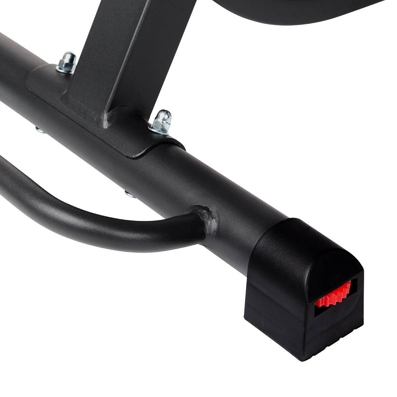 Pro dokonalou bezpečnost a stabilitu při jízdě je trenažér vybaven protiskluzovými pedály s nastavitelnými popruhy a nastavitelnými kryty nohou pro perfektní vyvážení.