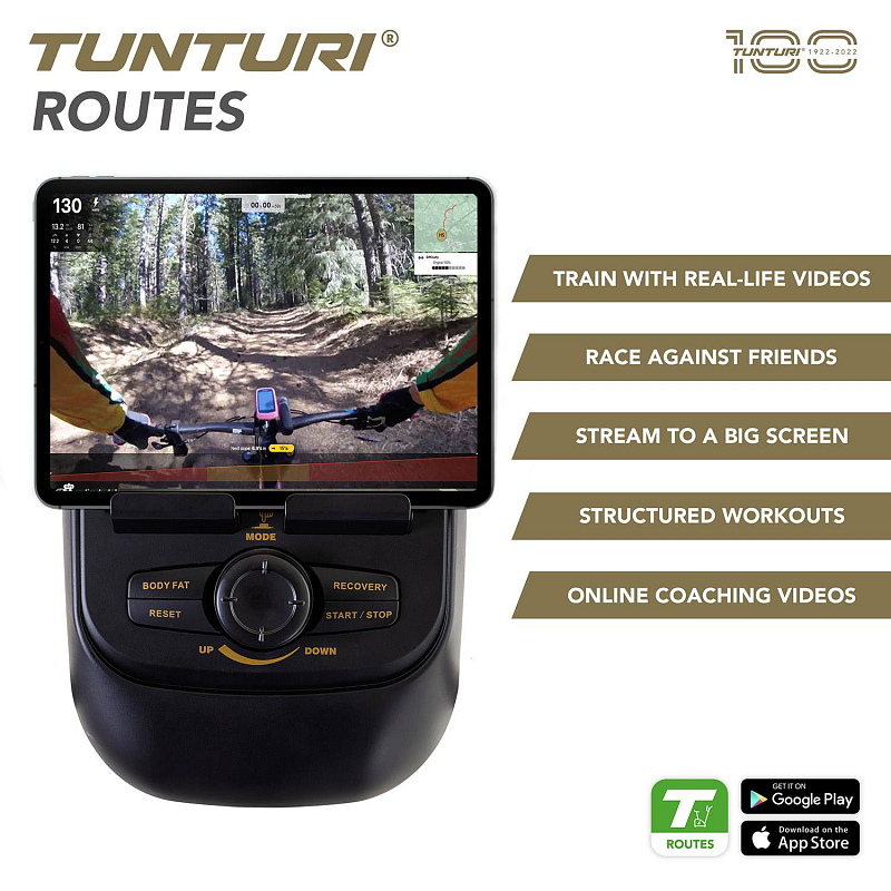 Stoupáte na Alpe d'Huez na kole? Svištíte na lyžích po sněhu v Alpách? S aplikací Tunturi Routes zůstává trénink zábavou a výzvou. Bezplatná verze aplikace poskytuje vždy přístup k patnácti videotrasám. S prémiovou verzí Tunturi Routes si můžete vybrat ze stovek tisíc kilometrů tras po celém světě a stovek tréninkových videí. Váš trénink bude skutečným vizuálním zážitkem!