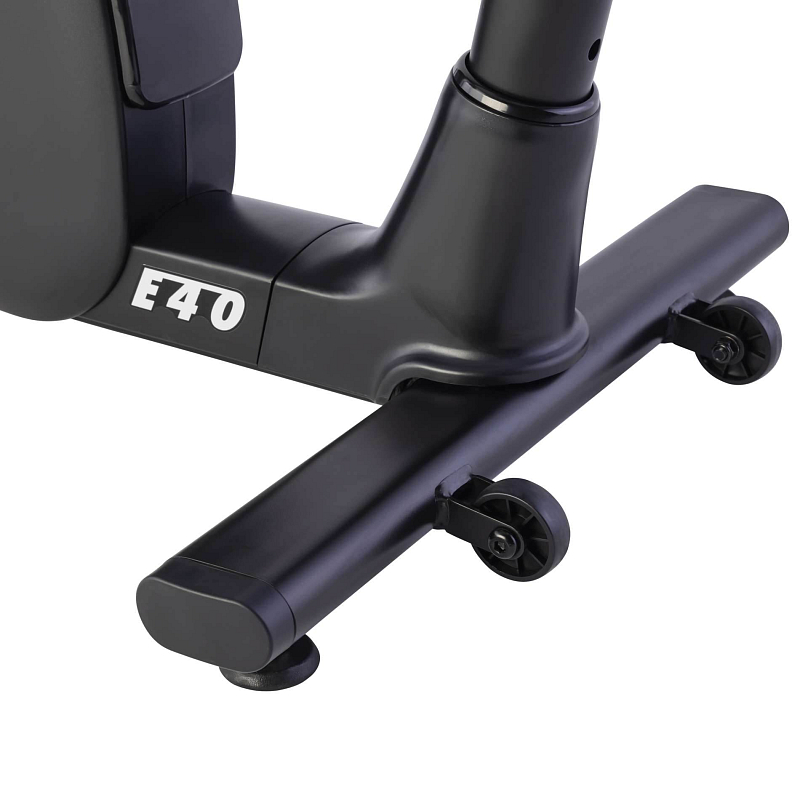 Díky nízkému a širokému stupínku je E40 doslova i obrazně přístupným rotopedem. Mezi sloupkem řídítek a krytem setrvačníku je poměrně velký prostor, takže při nastupování a sesedání nemusíte zvedat nohu přes sedlo nebo rám. Jedná se o beznárazový a bezpečný způsob, díky němuž je E40 vhodný i pro rehabilitaci, pro starší osoby nebo osoby s pohybovými problémy. Robustní rám poskytuje dostatečnou oporu při nastupování a vystupování.