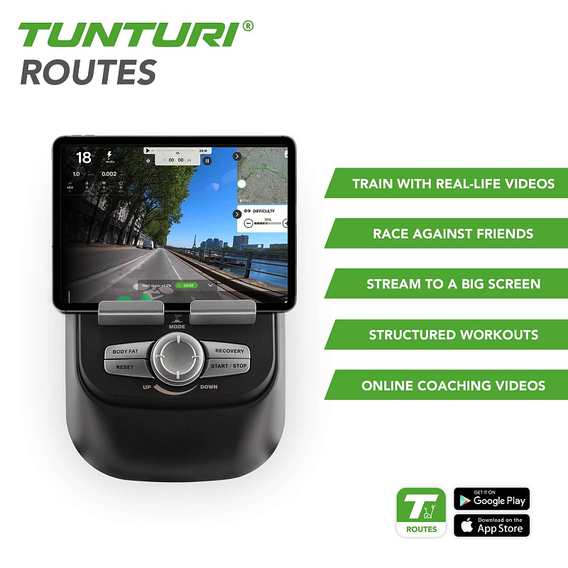Aplikace: (Android/iOS)Tunturi Routes / Iconsole+ Training / Kinomap / Zwift Compatible