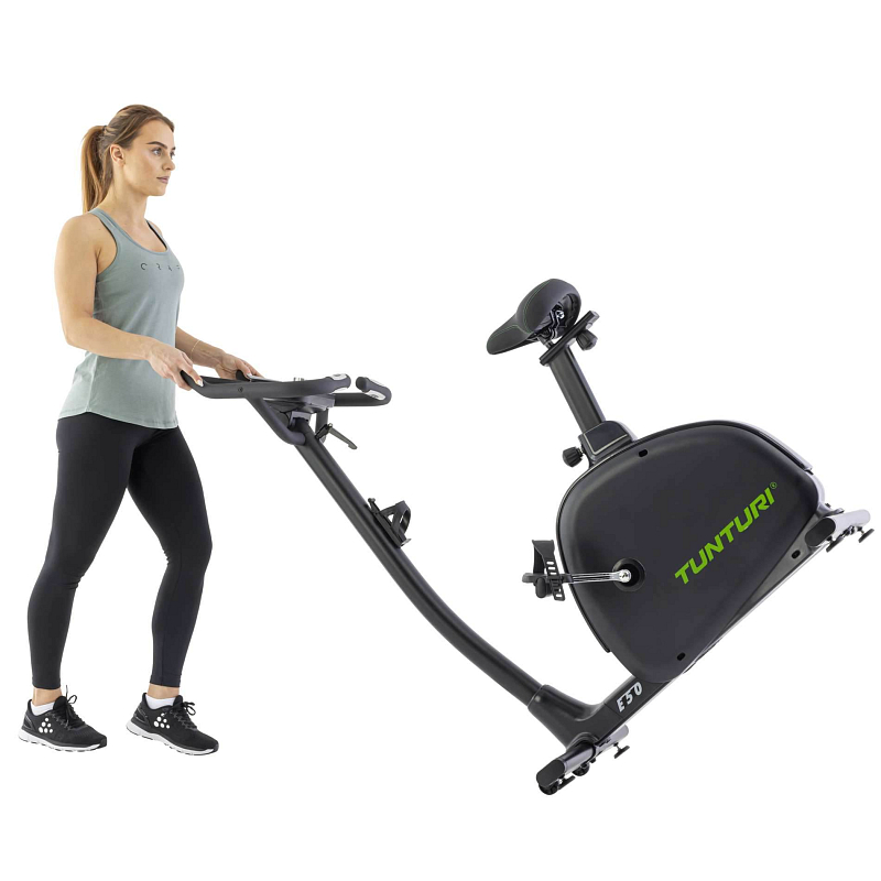 Model E50 má mezi sloupkem řídítek a krytem setrvačníku další prostor. To znamená, že nemusíte zvedat nohu nad sedadlo nebo vytahovat nohu vysoko, abyste mohli na trenažér nastoupit nebo z něj vystoupit. Nastupování a vystupování je přístupné a bezpečné pro každého, což trenažér předurčuje také k rehabilitaci, pro starší osoby nebo osoby s pohybovými problémy.