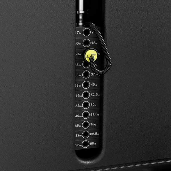 Závaží stroje tvoří sada cihel, které jsou opatřeny štítkem s celkovou hmotností v kilogramech a librách. Volič zátěže je vyroben z hliníku a proti ztrátě je připevněn na lanku zkrouceném do spirály. Na krytu závaží je umístěna cedulka s názvem stroje, piktogramem, které svaly lze na daném stroji procvičovat a ilustrace, jak se daný stroj užívá. Sedáky a opěrky jsou vyrobeny z hrubé desky, která je opatřena tenkou vrstvou seciální pěny a jsou potaženy perforovaným materiálem, který je prodyšný a snižuje míru pocení během intenzivního tréninku. Rukojeti jsou vyrobeny z tepelně tvarované pryže odolné proti potu, poškození a oděru. Jejich konce jsou chráněny hliníkovou koncovkou s logem, která zabraňuje jejich posunu během tréninku.