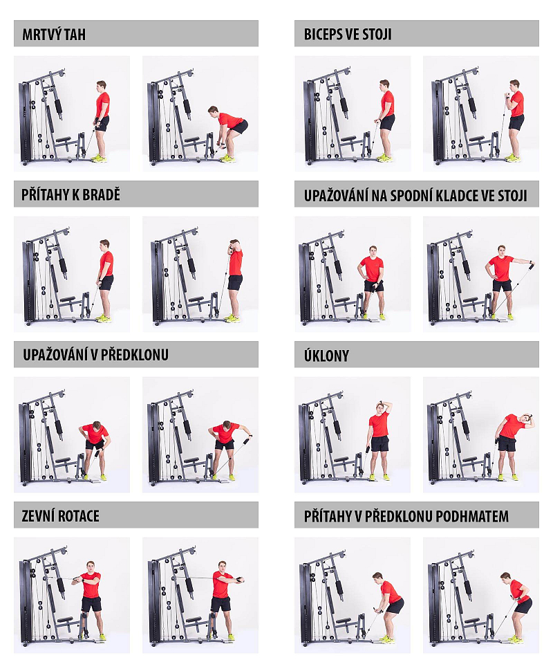 • Spodní kladka je určena na cviky jako veslování, posilování bicepsu a mnoho dalších cviků..