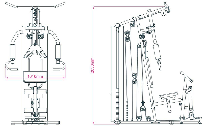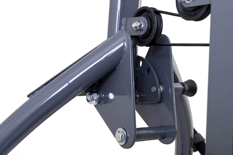 Robusní ocelová konstrukce doplněná ložisky v kladkách a kvalitními ocelovými lanky potaženými speciálním plastem pak zaručuje bezpečné cvičení a dlouhou životnost stroje.