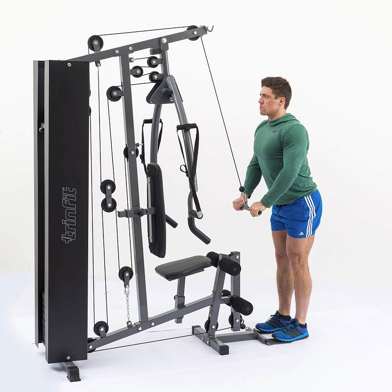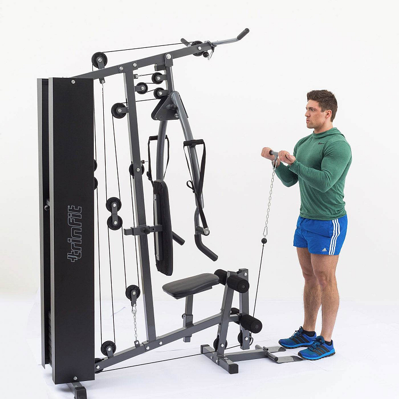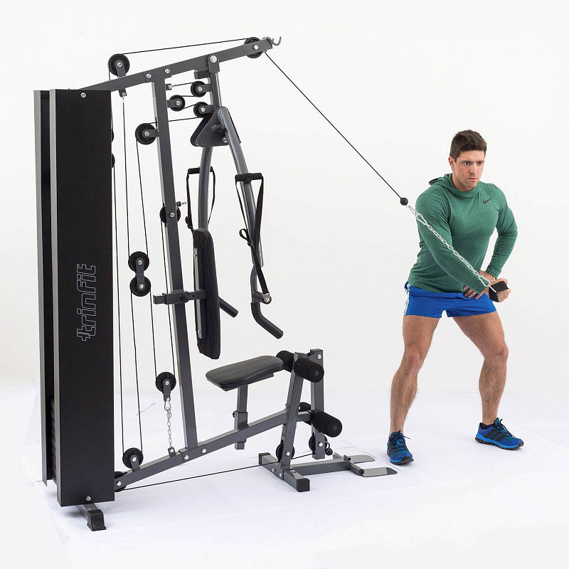 Multifunkční posilovací věž TRINFIT Gym GX3 je určena pro pravidelný kondiční trénink. Svým vybavením stanovuje nové standardy v této kategorii věží, nabízí široké možnosti polohování adaptérů, svou variabilitou a množstvím cviků předčí věže podstatně dražší. Díky důmyslné konstrukci a řadě adaptérů umožňuje věž na ploše pouhých 2 m2 procvičit přes 50 různých cviků na všechny svalové partie.