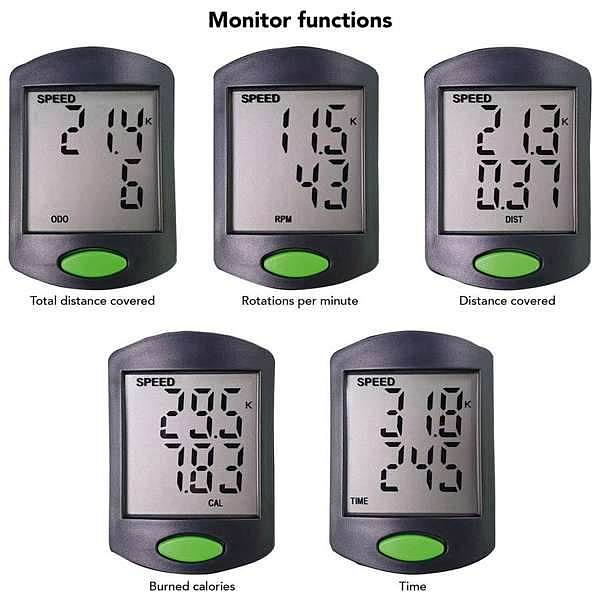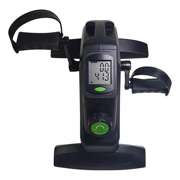 Trénujte nejen nohy, ale i ruce. Postavte mini kolo na stůl a proměňte pedály v robustní rukojeti. Nastavíte odpor na požadovanou úroveň a vestavěný počítač zobrazuje rychlost, dobu tréninku, odhadovaný počet spálených kalorií a otáčky za minutu. Mini kolo M35 bezpečně zastaví pomocí magnetického brzdového systému (ruční brzdový systém PMS).