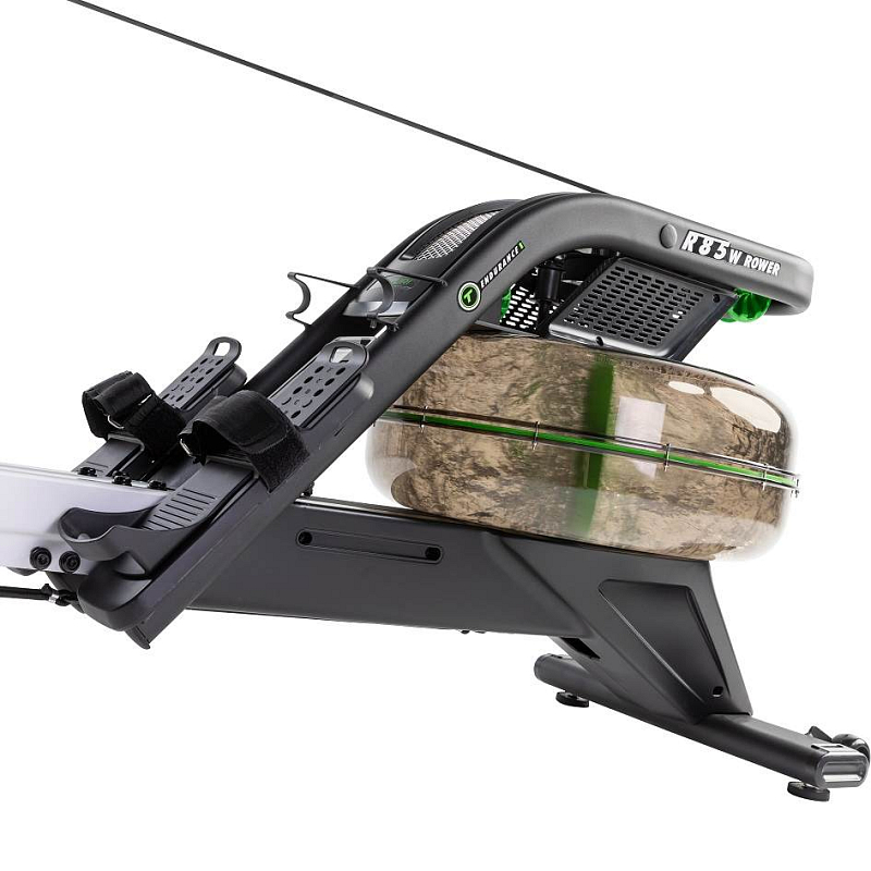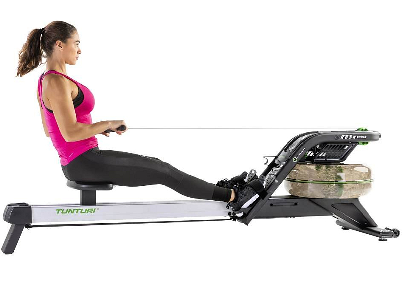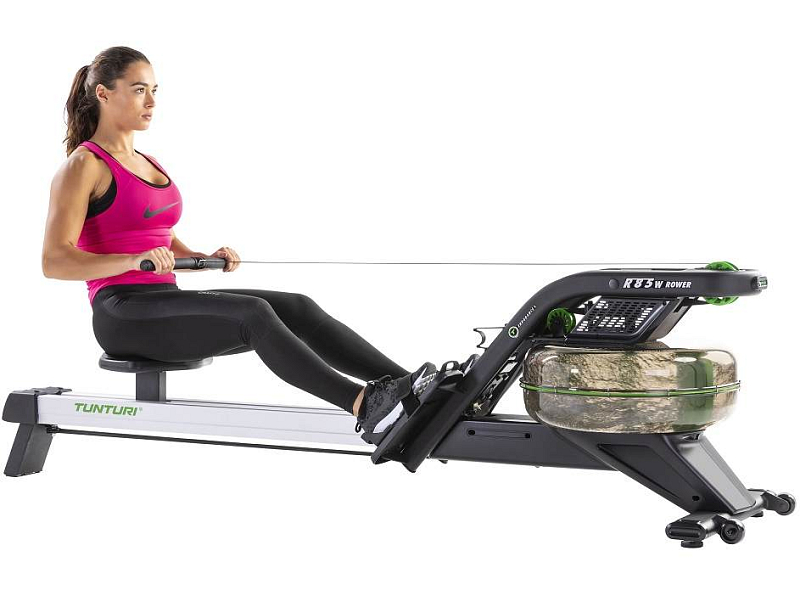 Veslovací trenažér TUNTURI R85W nabízí zákazníkům kombinaci kvalitní mechaniky a ergonomie rámu s nosností do 135 kg. Díky přirozené ergonomii a odporu vytvářené vodou v nádrži je zaručen pohodlný a správný pohyb jako při opravdovém veslování v přírodě! Stabilní a masivní konstrukce TUNTURI R85W spolu s kvalitními komponenty prodlužuje životnost stroje i při využití těžšími osobami a předurčuje model i pro pravidelný sportovnější trénink.