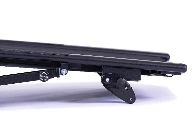 Manuálně nastavitelný sklon je nastavitelný do 3 poloh (14 %, 17 % a 20 %) a běžecká plocha má rozměry 35x120 cm, díky tomu můžete simulovat chůzi, či běh do kopce a ztížit si tak trénink.