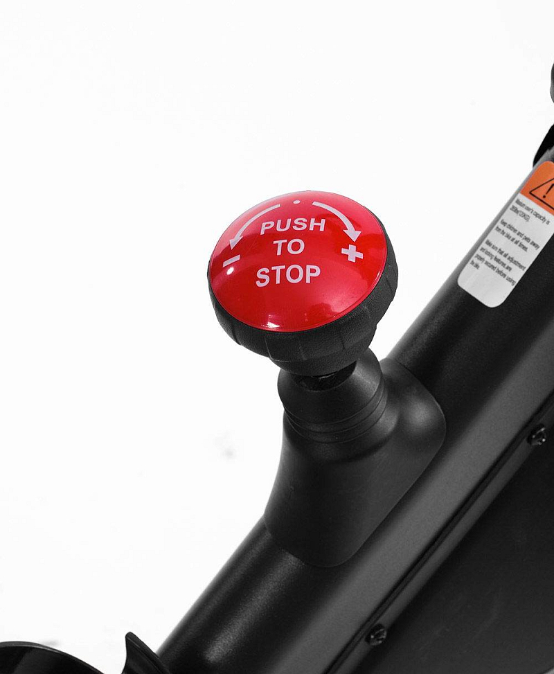 - Manuální regulace odporu prostřednictvím otočného regulátoru a přítlačné brzdy
