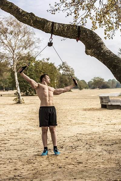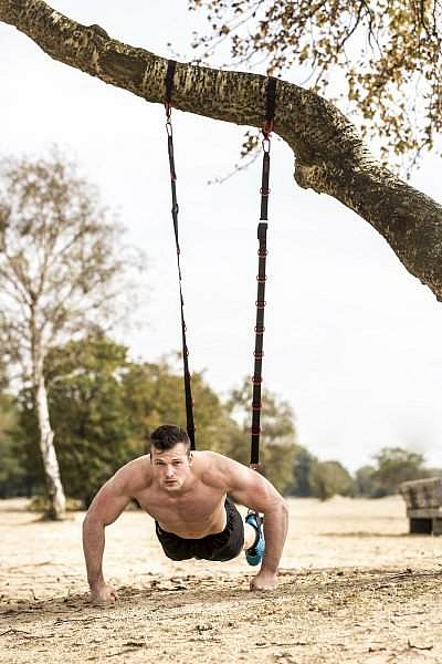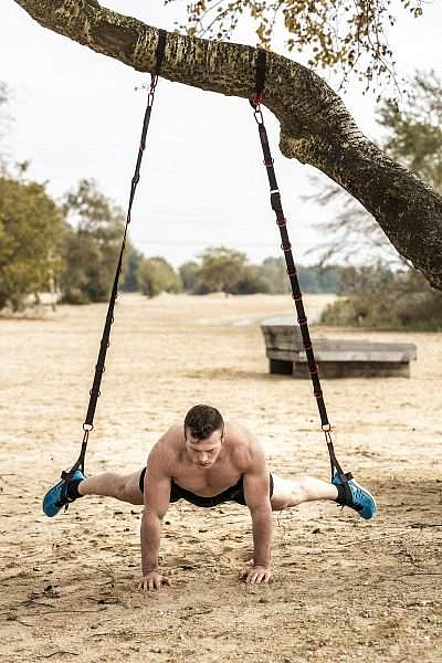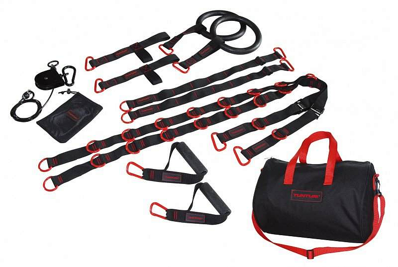 Tunturi Cross Fit Trainer. Profesionální a velmi efektivní systém posilování proti vlastní hmotnosti. Systém se skládá z popruhů, které lze snadno uchytit do dveří, na strom, či jiný opěrný bod. Konce úchytů jsou opatřeny měkkými úchopy pro ruce a nohy. 2 samostatné hlavní popruhy, kladka a D-ring adaptéry nabízí mnohem více variant cvičení než klasický suspension trainer.?
